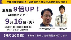 セミナー名 | 生産性を9倍UP!AI活用セミナー |
