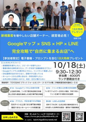 たった1人で広告費0円で業種問わず40店舗以上の認知拡大、来店数を改善してきたWEB集客コンサルタントが行うWEB集客セミナーです。