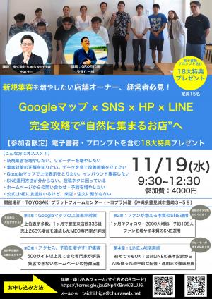 たった1人で広告費0円で業種問わず40店舗以上の認知拡大、来店数を改善してきたWEB集客コンサルタントが行うWEB集客セミナーです。