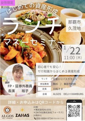 | セミナー名 | ご好評につき第29回目!女性限定・ランチマネーセミナー |