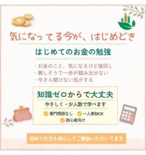 | セミナー名 | 気になってる今が、はじめどき「はじめてのお金の勉強」 |